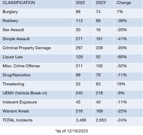 - WEBSITE IMPROVEMENTS A crime statistics dashboard was created at the request of the Police Commission. The Criminal Investigation Division highlights, previously only available at the Alapai security post, are now available online as is a database to look up stolen bicycles.