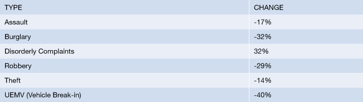 The Chinatown Law Enforcement Task Force was created to address community concerns, such as homelessness, crimes against persons and illegal drug use, and to lower the overall crime rate in the downtown area. Task force officers also provide outreach services for homeless individuals. Crime in Chinatown has decreased in most categories, the number of homeless individuals in Chinatown has been reduced, and the overall feeling from business owners has been positive.